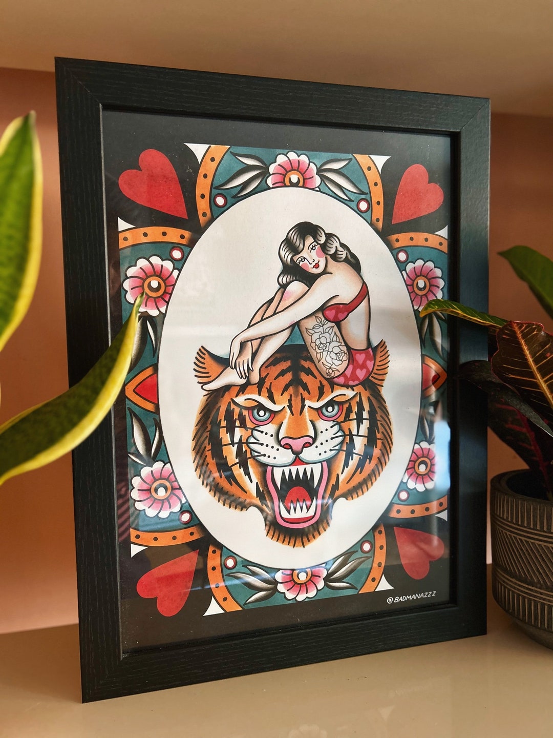 Tiger Queen A3 Traditional Tattoo Flash Print Etsy Australia